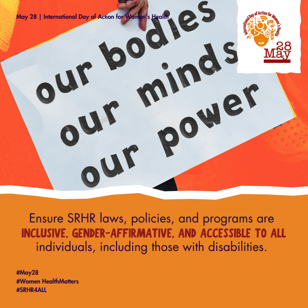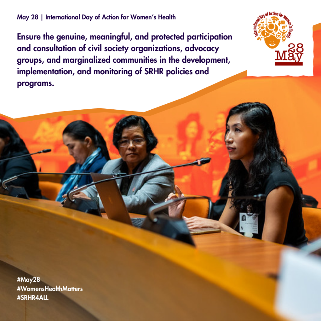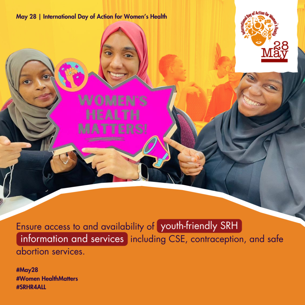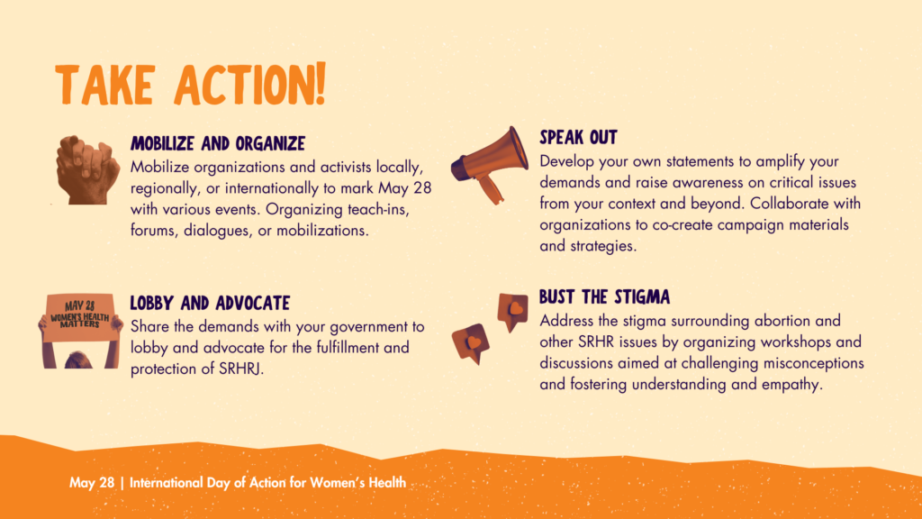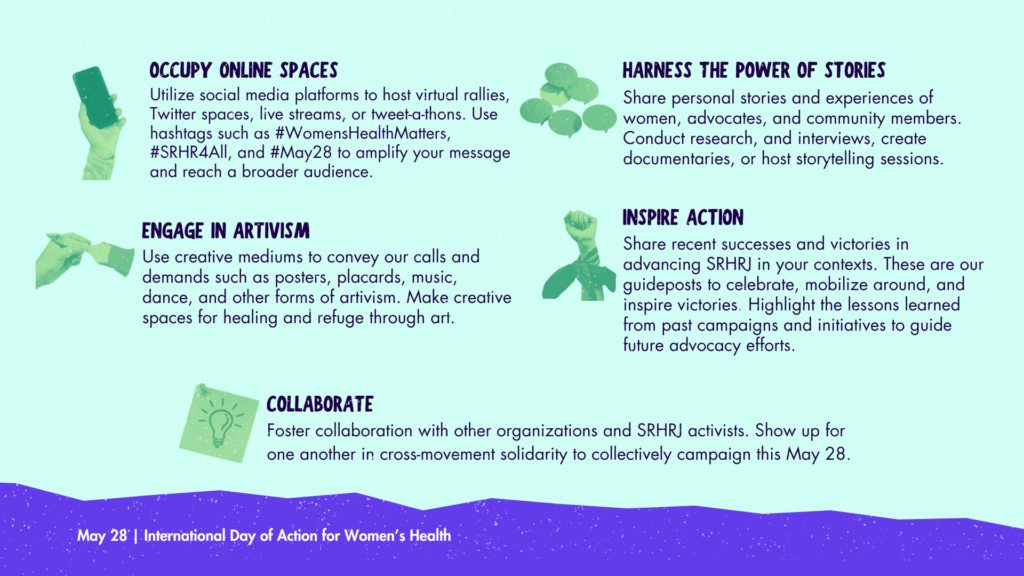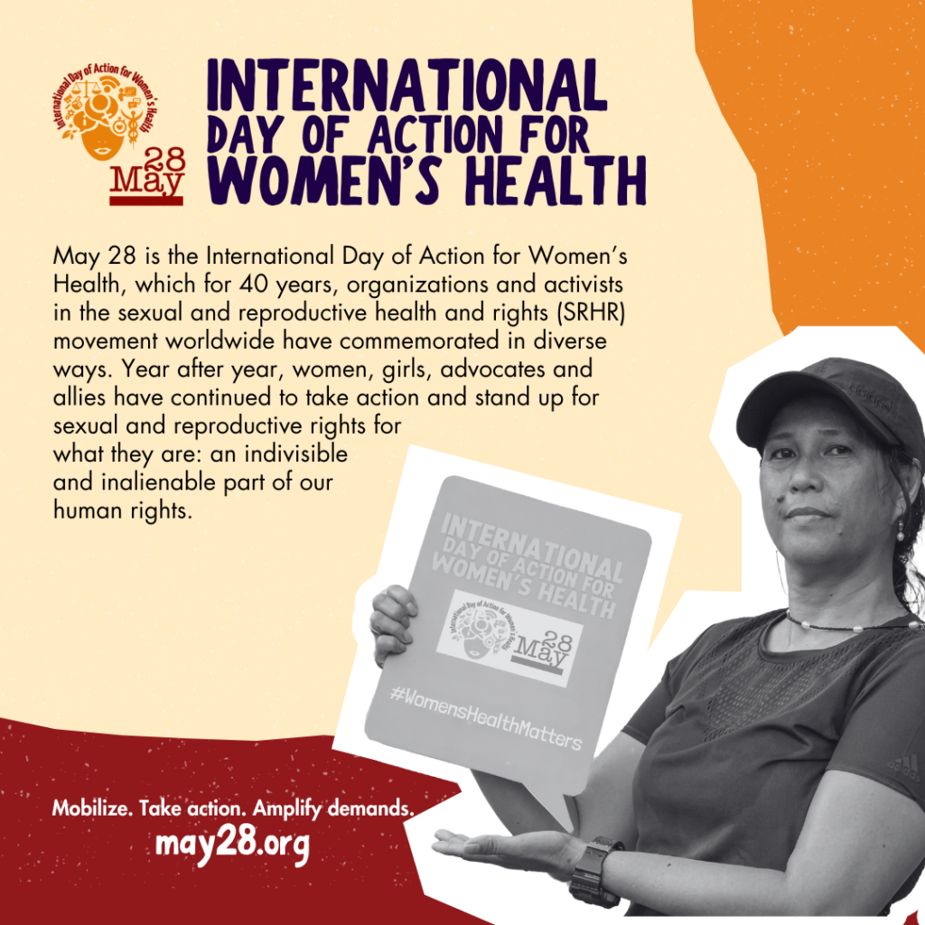 • This #May28 – International Day of Action for Women’s Health, organizations and activists mobilize, take action, and amplify demands for sexual and reproductive health and rights and justice (#SRHRJ)! Join us: may28.org