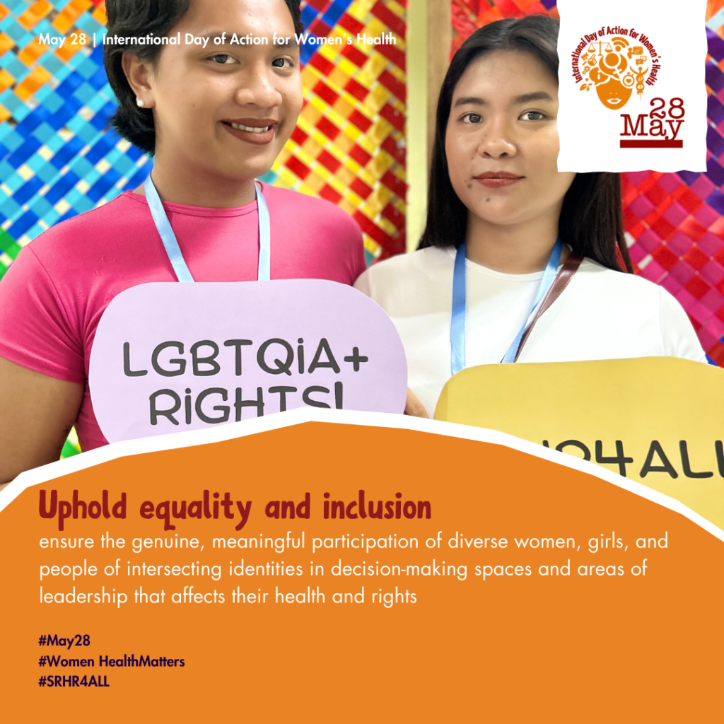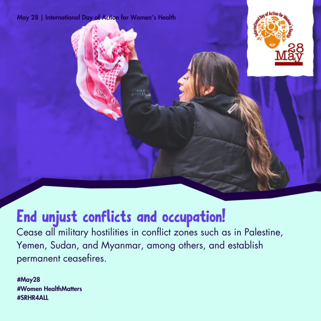 • We are in turbulent times characterized by wars, injustices and crises. The year also presents us with opportunities to demand global leaders to commit to a future where women, girls, and gender-diverse people’s SRHR is fulfilled, protected, and promoted. Join us in speaking out and amplifying #May28 demands: may28.org