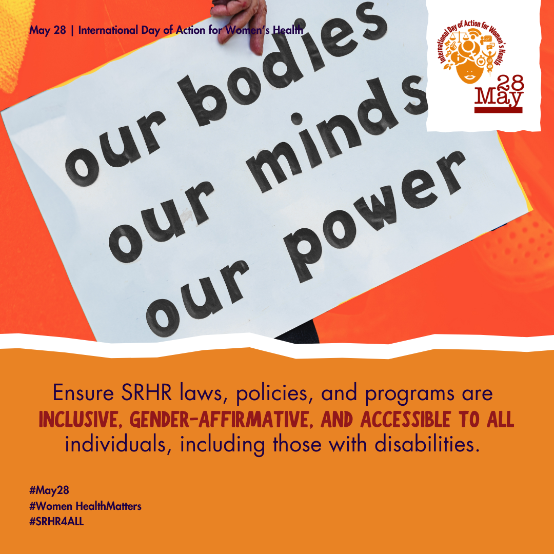 • We are in turbulent times characterized by wars, injustices and crises. The year also presents us with opportunities to demand global leaders to commit to a future where women, girls, and gender-diverse people’s SRHR is fulfilled, protected, and promoted. Join us in speaking out and amplifying #May28 demands: may28.org